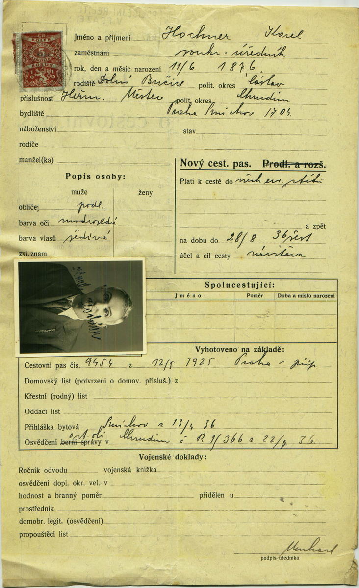National archives Prague > Police Directorate Prague > 1931-1940 > H > Hochner Karel