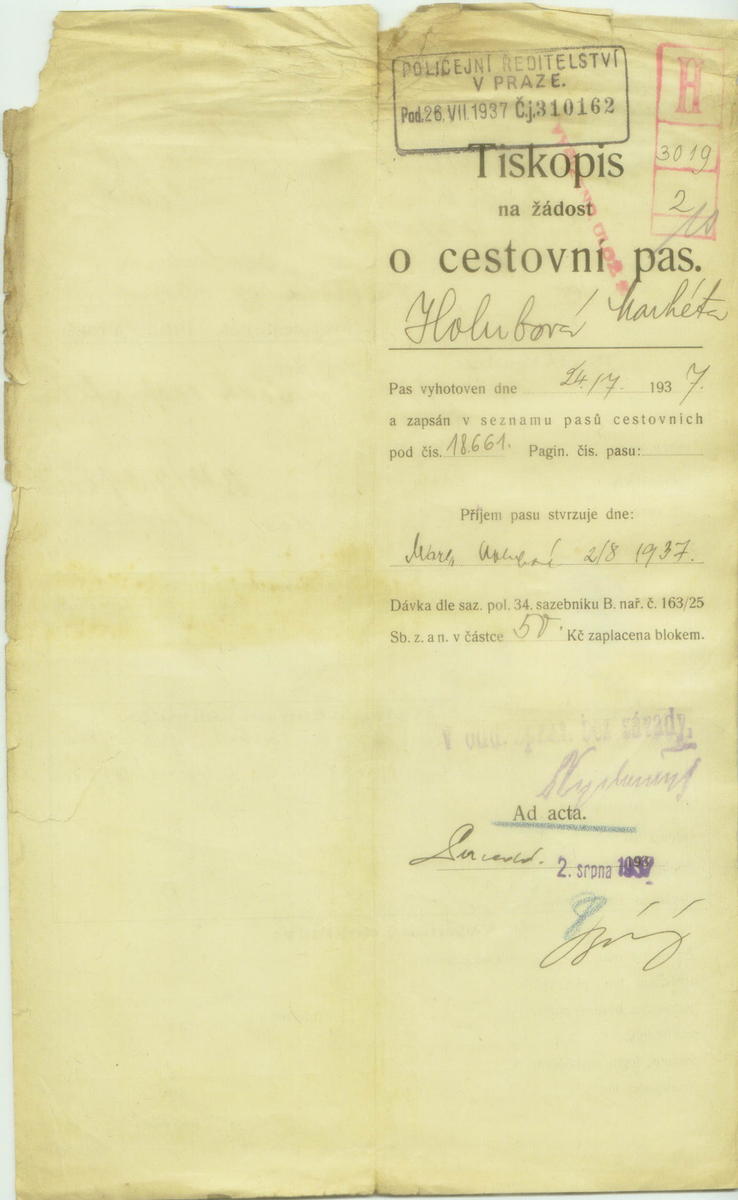 National archives Prague > Police Directorate Prague > 1931-1940 > H > Holubová Markéta