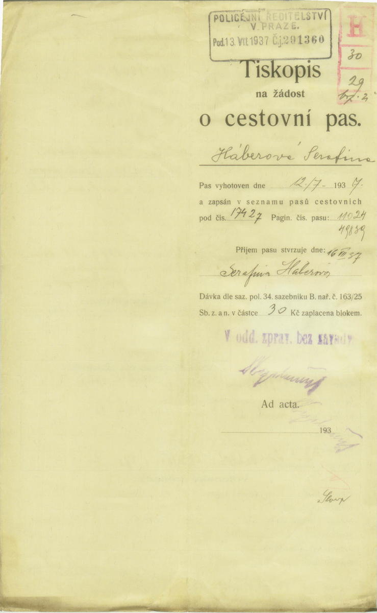 National archives Prague > Police Directorate Prague > 1931-1940 > H > Haberová Serafina