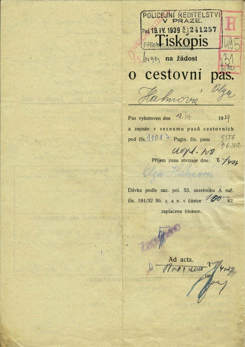 National archives Prague > Police Directorate Prague > 1931-1940 > H > Hahnová Olga