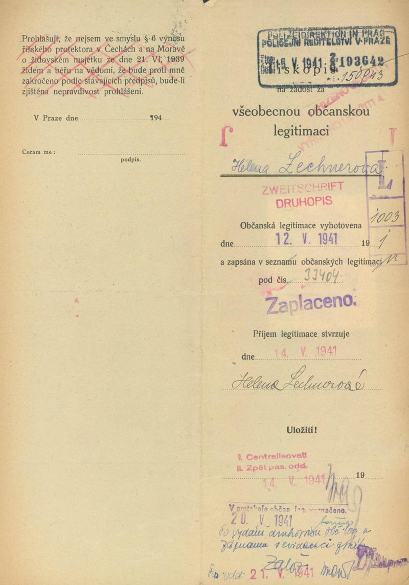Lechnerová Helena: Žádost o vydání občanské legitimace