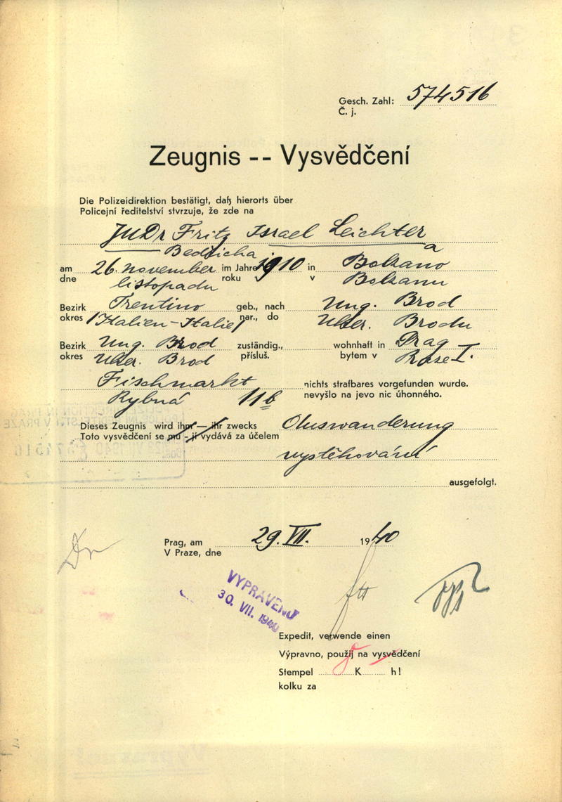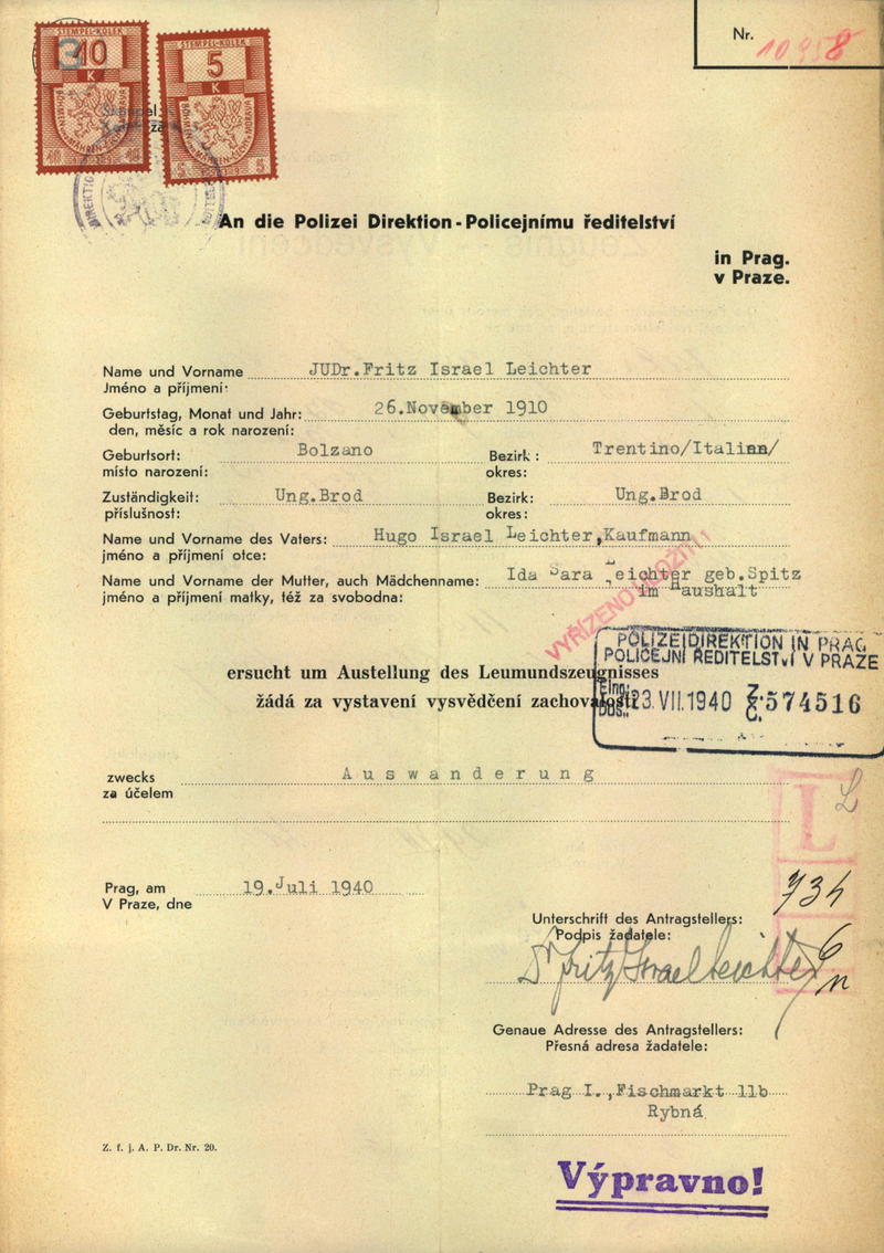 National archives Prague > Police Directorate Prague > 1941-1950 > L > Leichter Bedřich