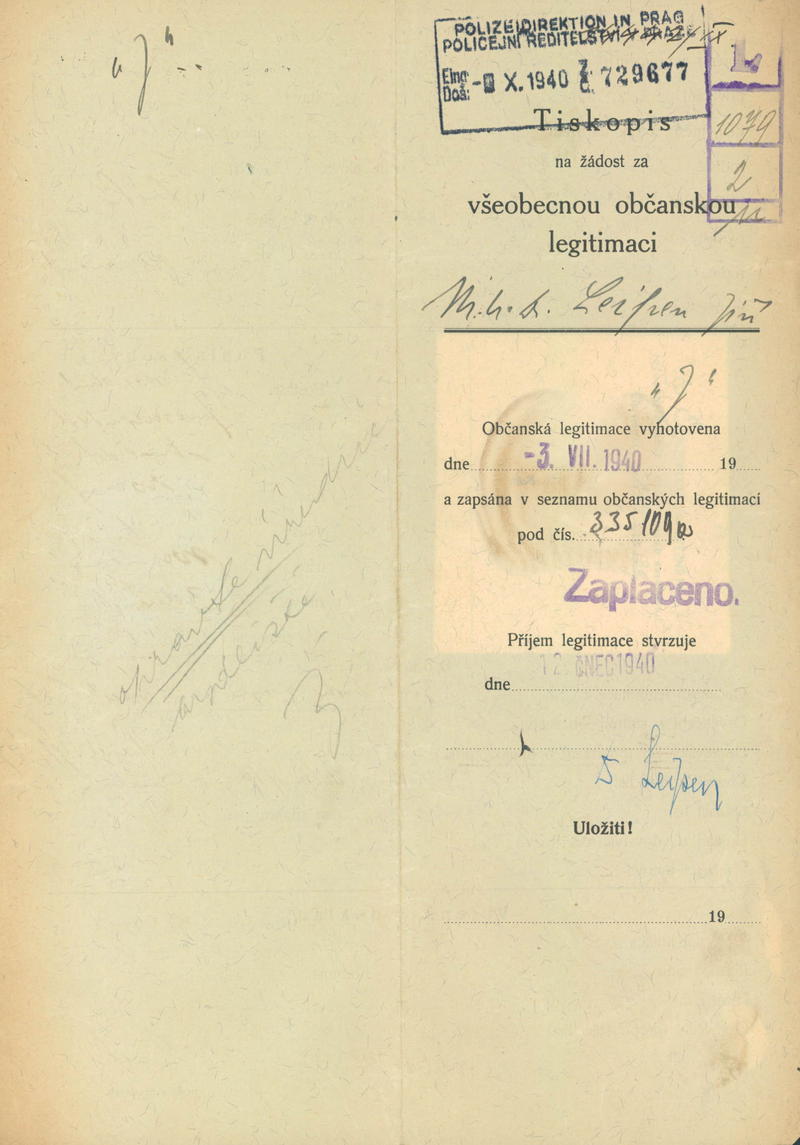 Leipen Jiří: Žádost o vydání občanské legitimace