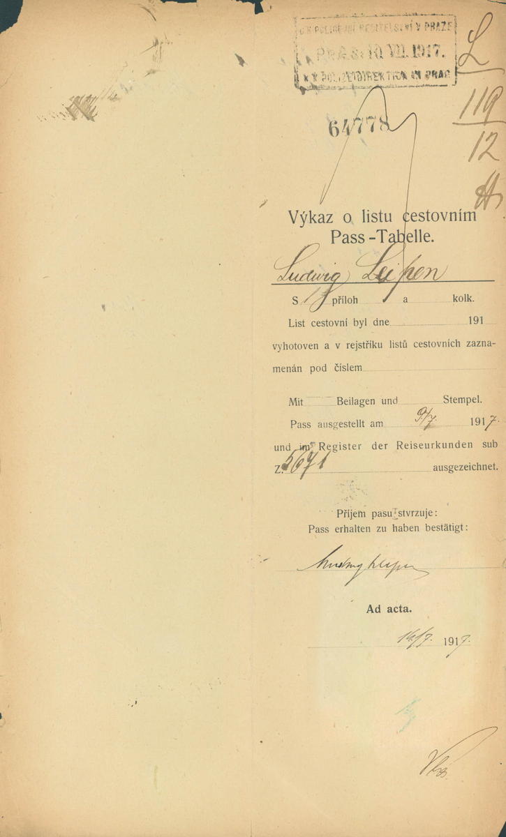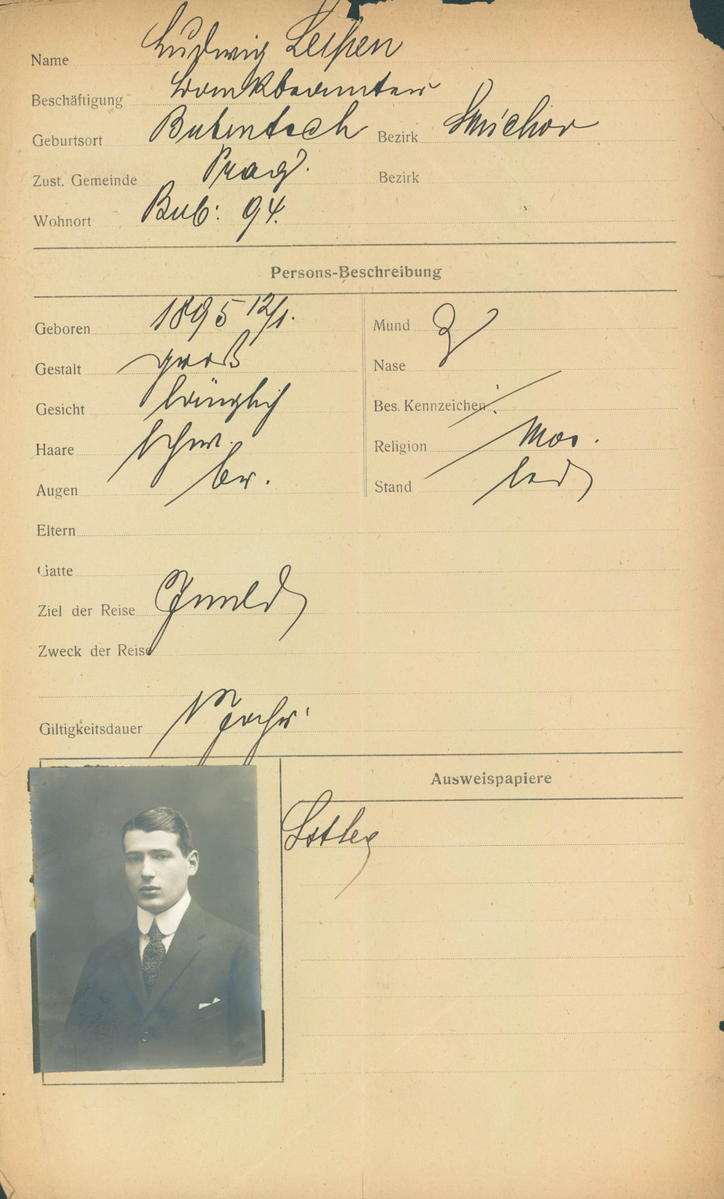 Leipen Ludvík: Žádost o vydání cestovního pasu