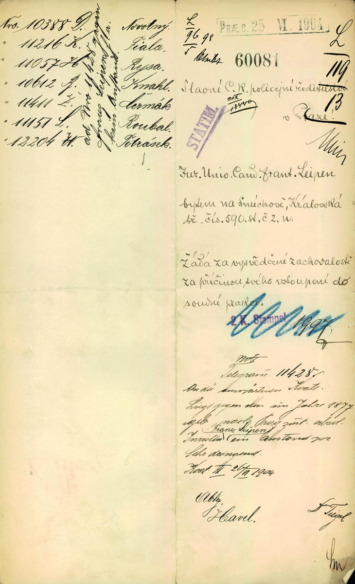 National archives Prague > Police Directorate Prague > 1941-1950 > L > Leipen František