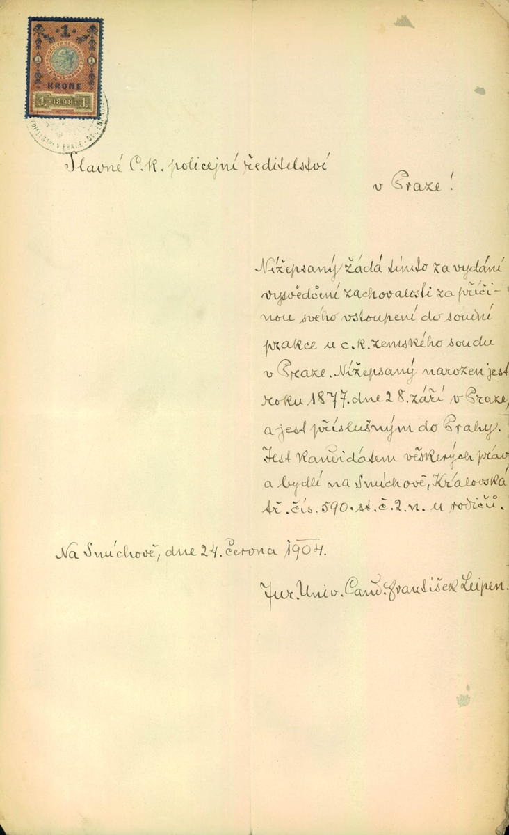 Leipen František: Žádost o vystavení vysvědčení zachovalosti