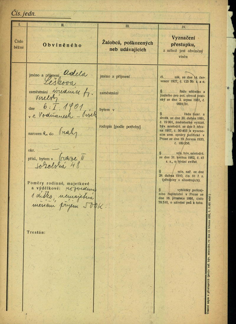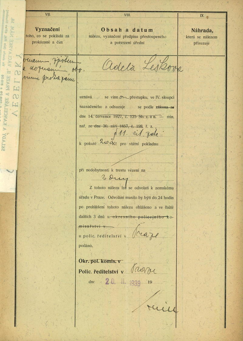 National archives Prague > Police Directorate Prague > 1941-1950 > L > Lešková Adéla