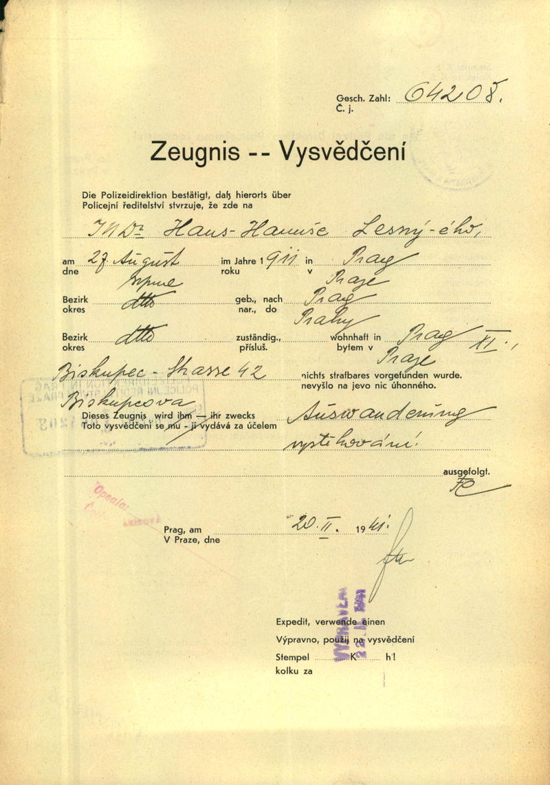 National archives Prague > Police Directorate Prague > 1941-1950 > L > Lesný Hanuš