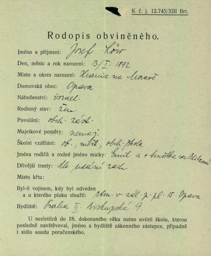 National archives Prague > Police Directorate Prague > 1941-1950 > L > Löw Josef