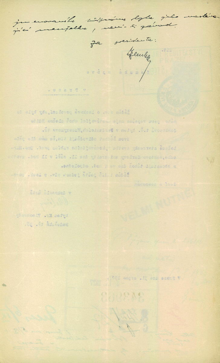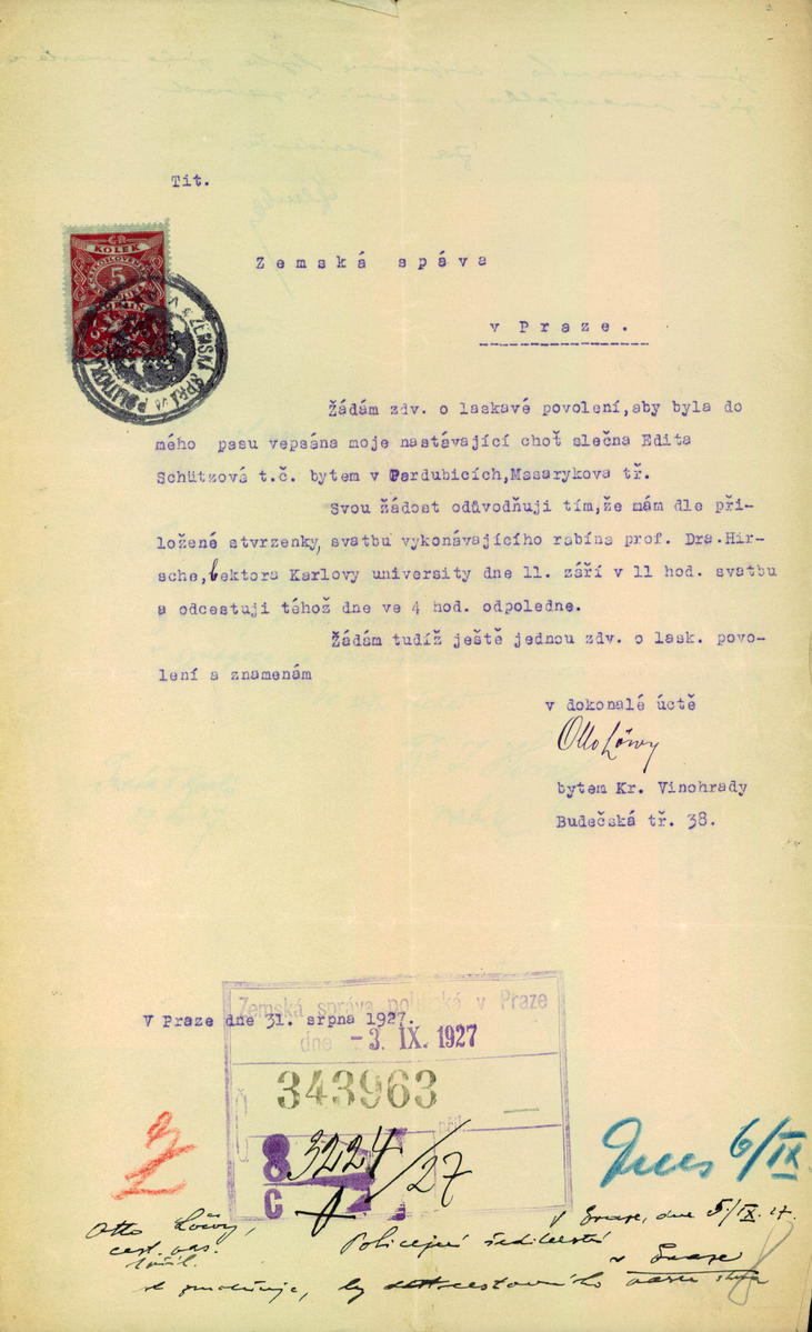 Löwy Otto: Žádost o připsání manželky do cestovního pasu