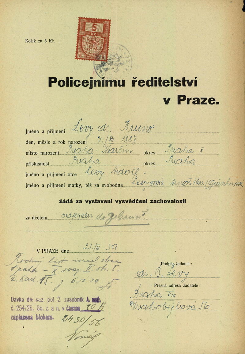 National archives Prague > Police Directorate Prague > 1941-1950 > L > Levy Bruno J.