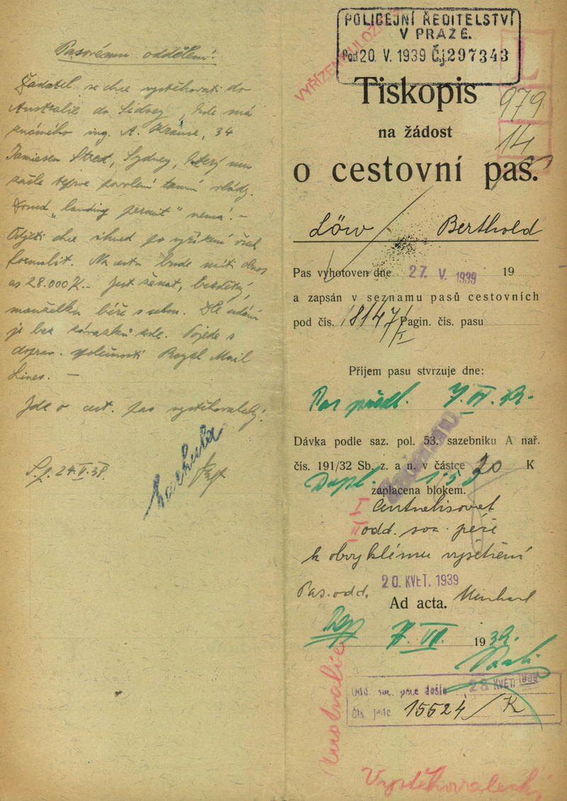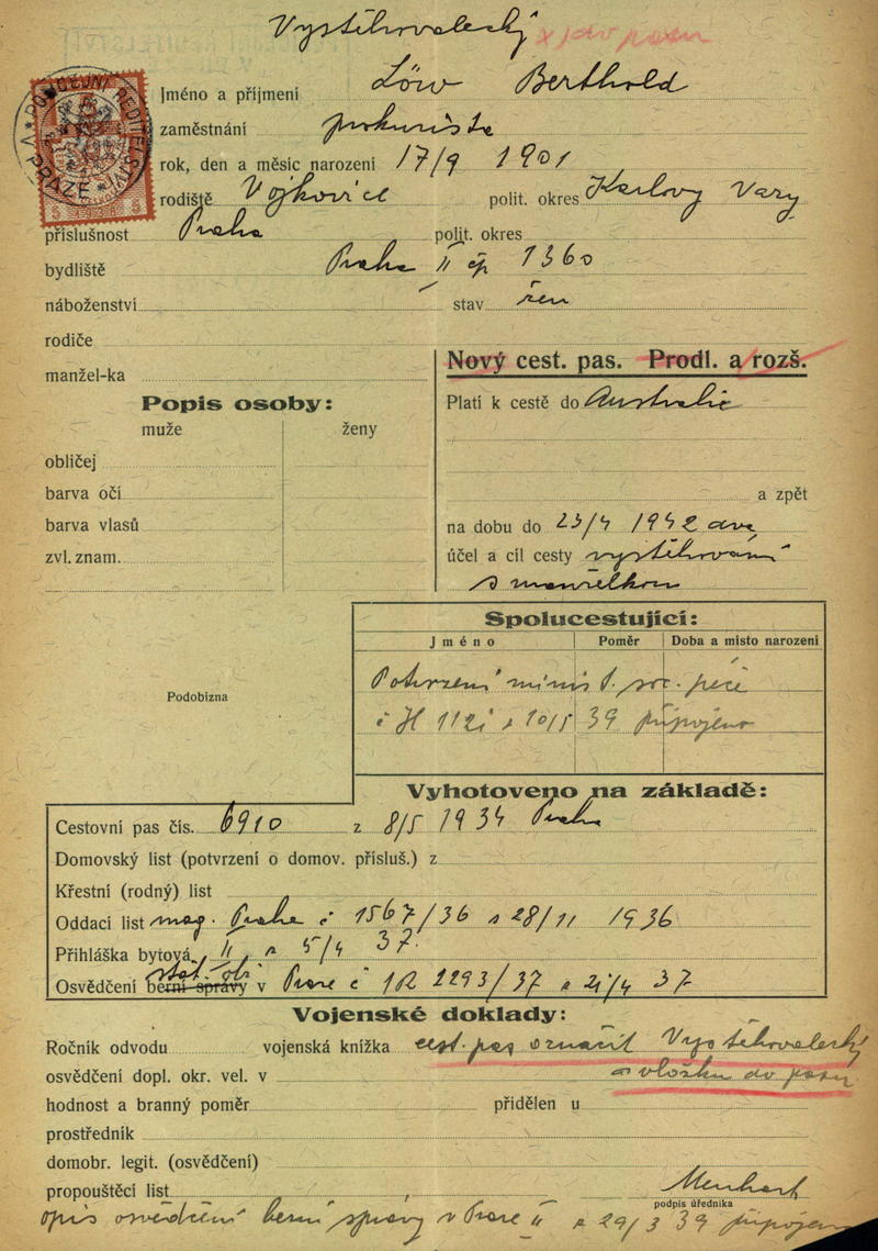 Löw Bertold: Žádost o rozšíření cestovního pasu