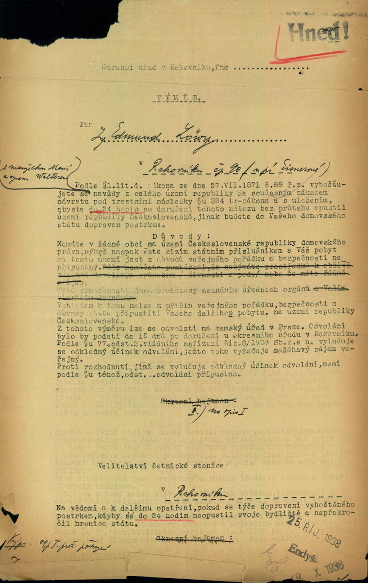 Löwi Edmund: Vyhoštění z území státu