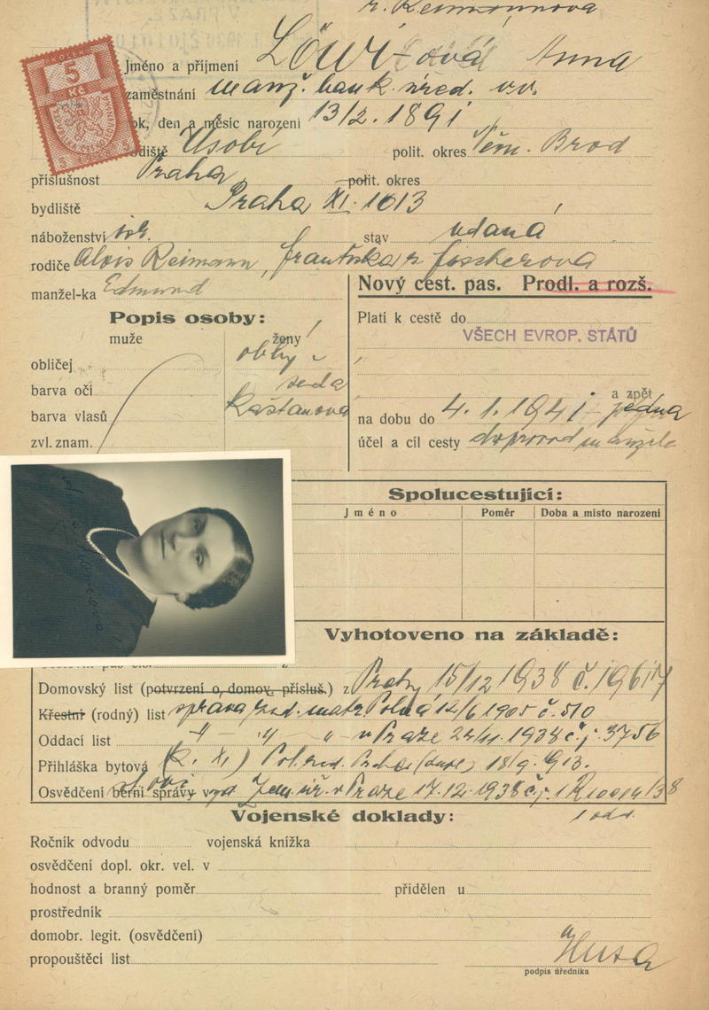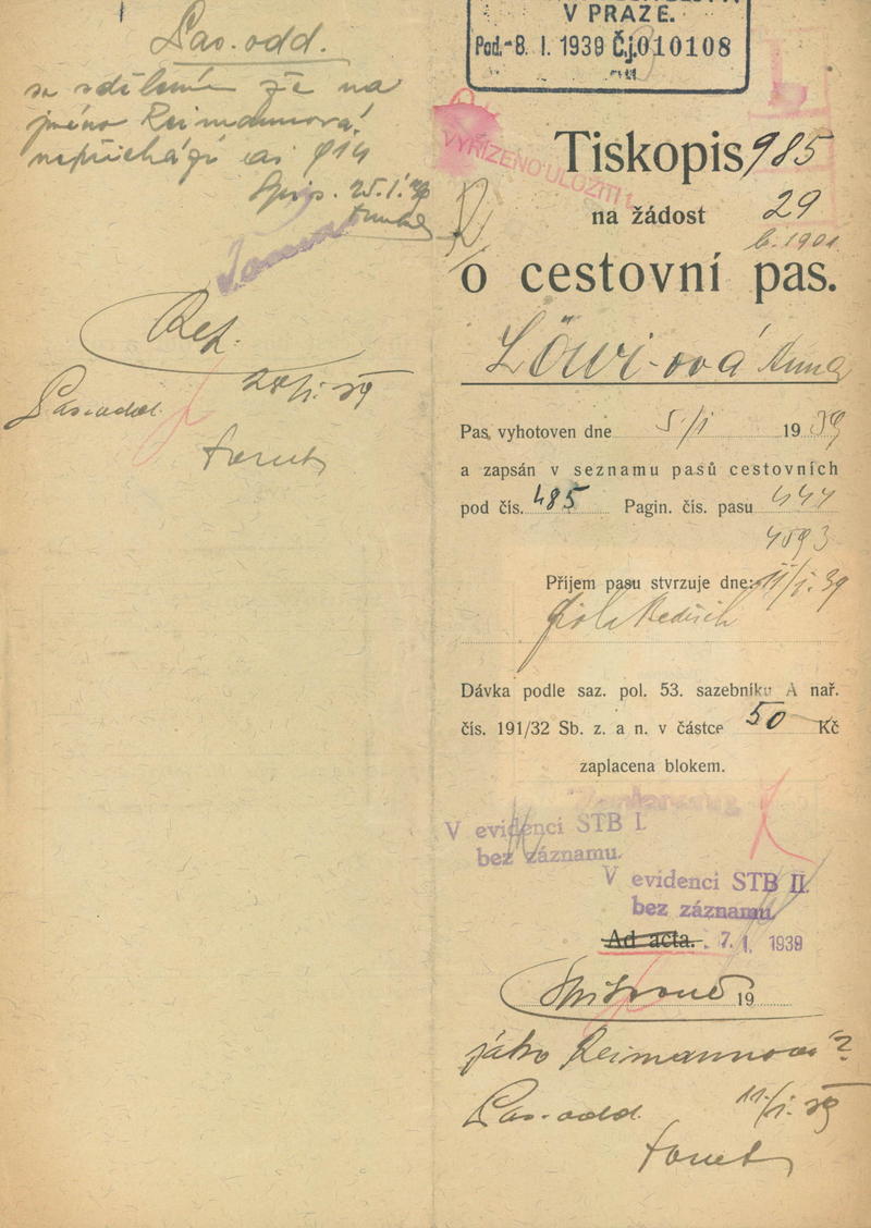 Löwiová Anna: Žádost o vydání cestovního pasu