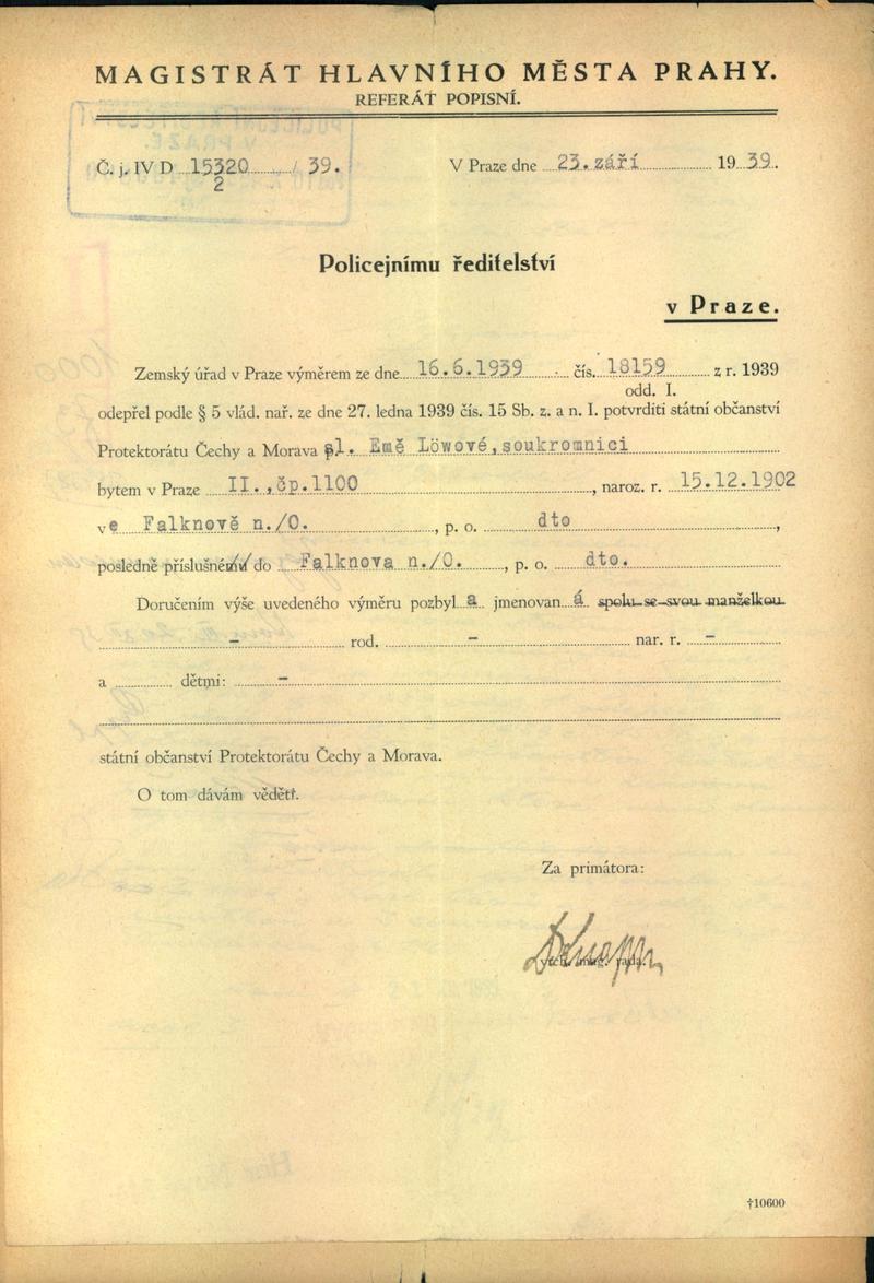 National archives Prague > Police Directorate Prague > 1941-1950 > L > Löwová Ema