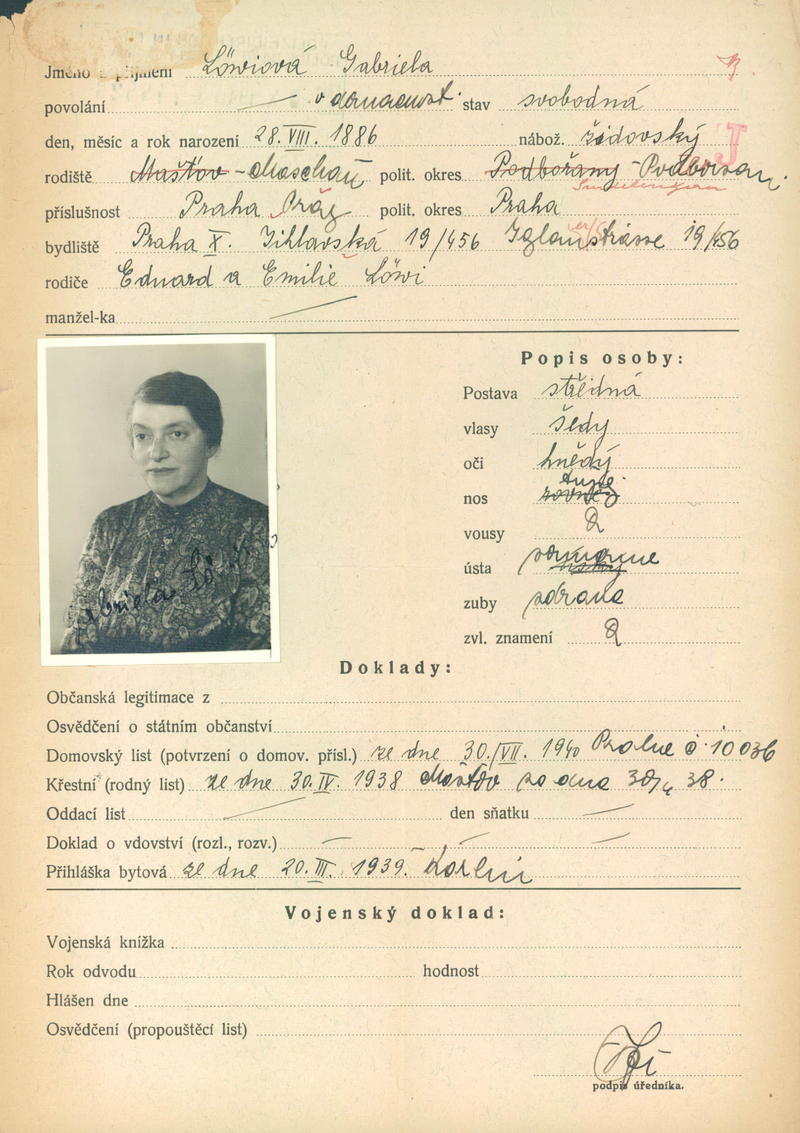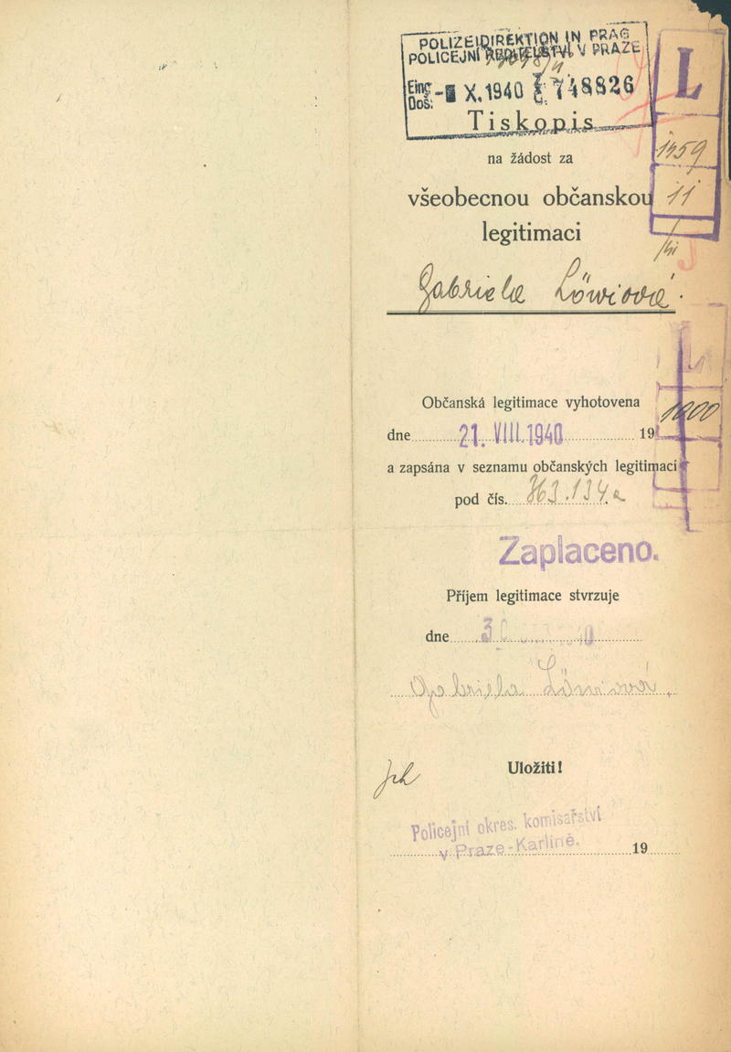 Löwiová Gabriela: Žádost o vydání občanské legitimace