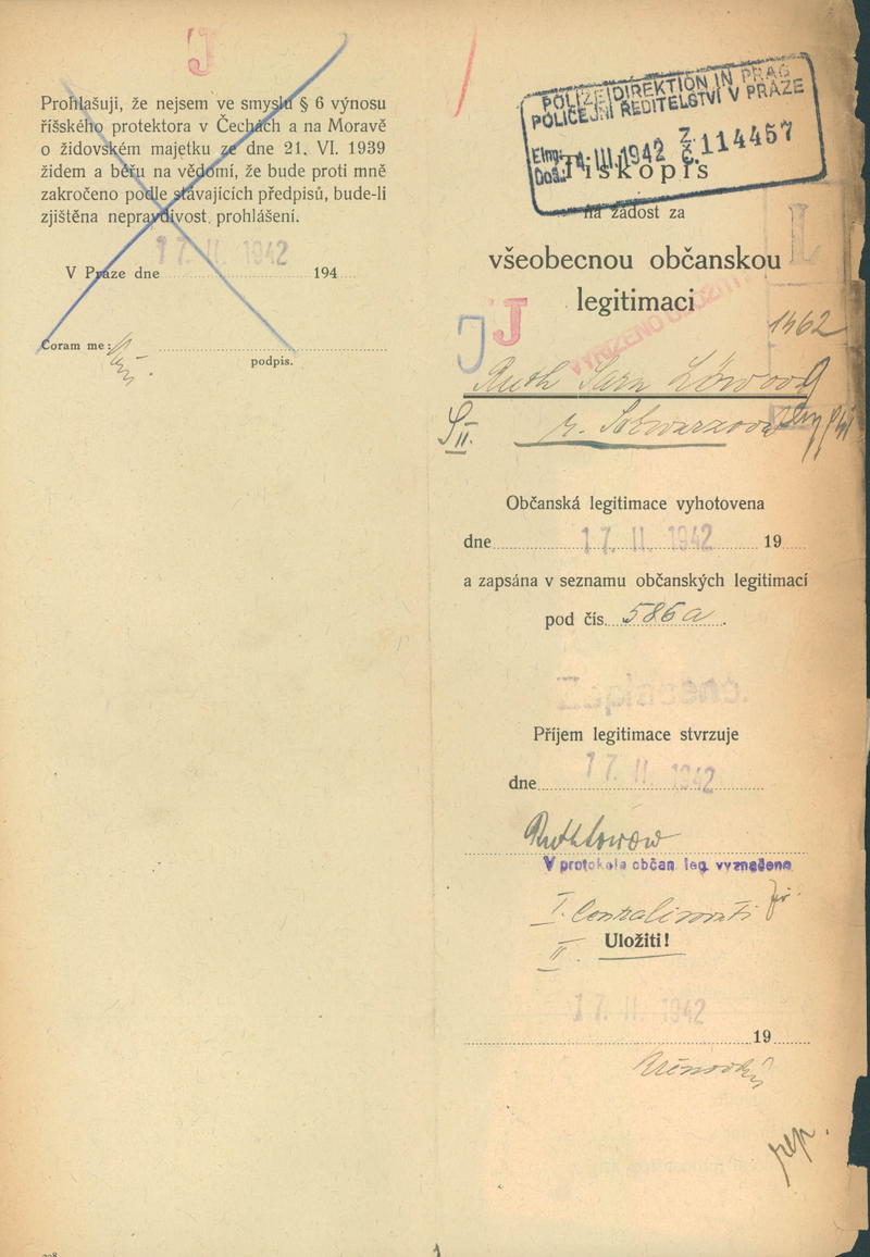 Löwová Ruth: Žádost o vydání občanské legitimace