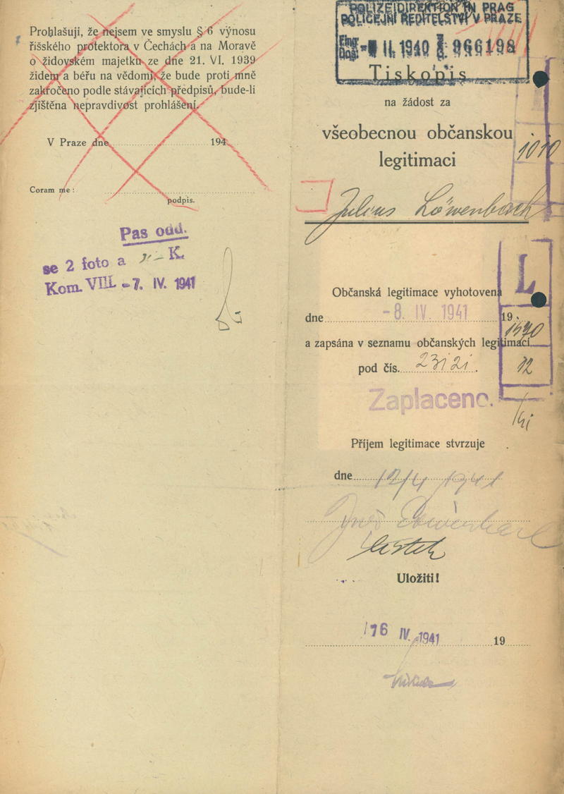 Löwenbach Julius: Žádost o vydání občanské legitimace