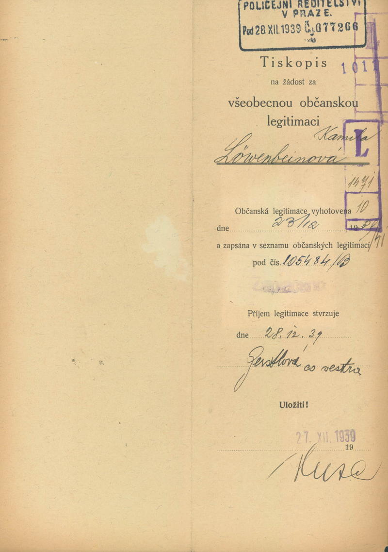 Löwenbeinová Kamila: Žádost o vydání občanské legitimace