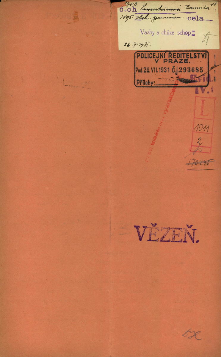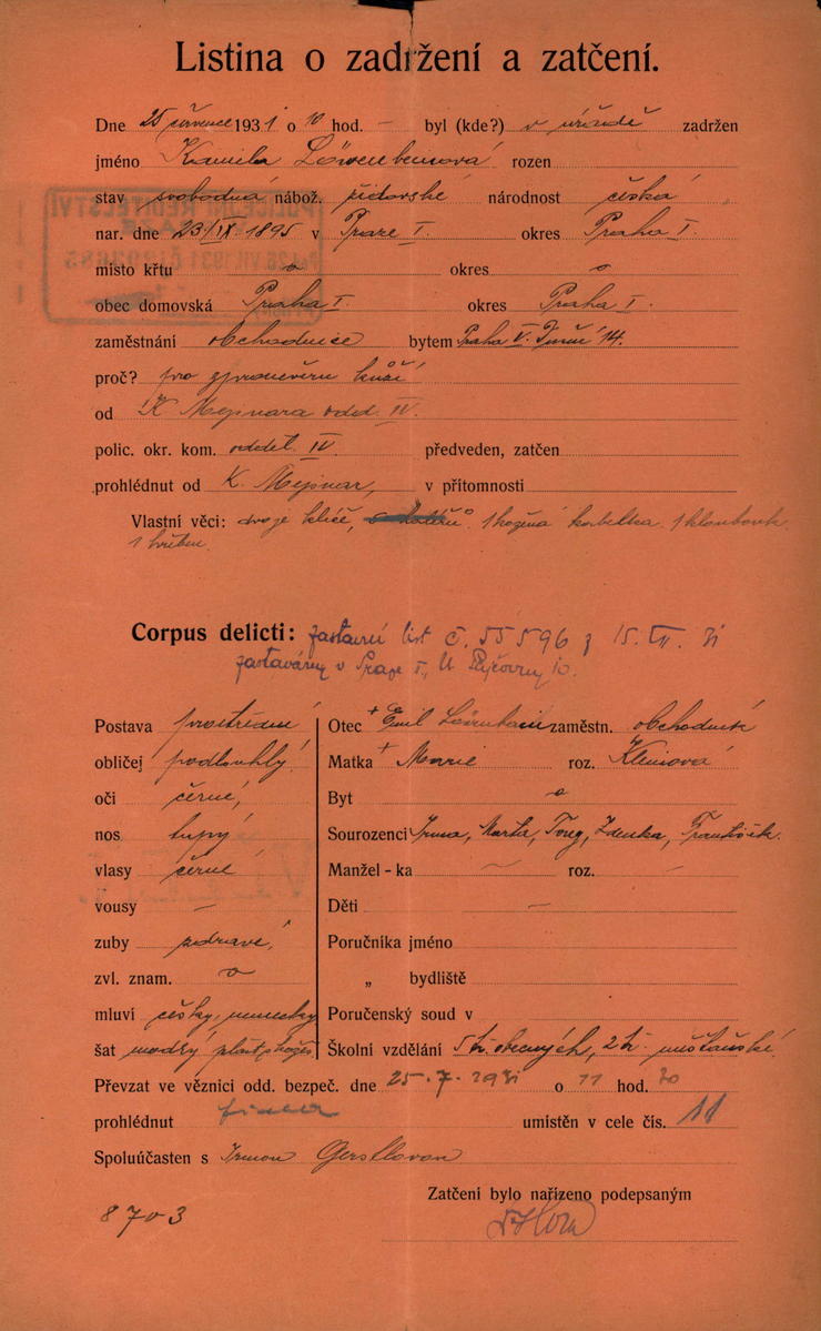 Löwenbeinová Kamila: Protokol o zadržení a zatčení
