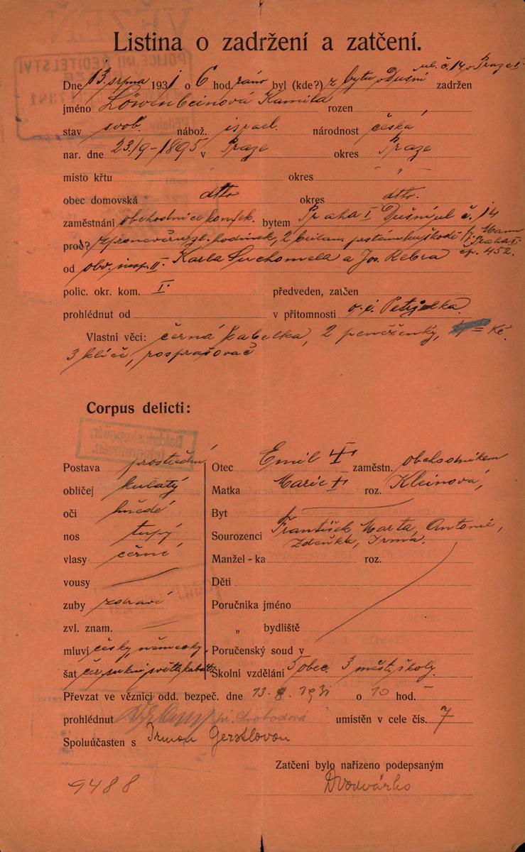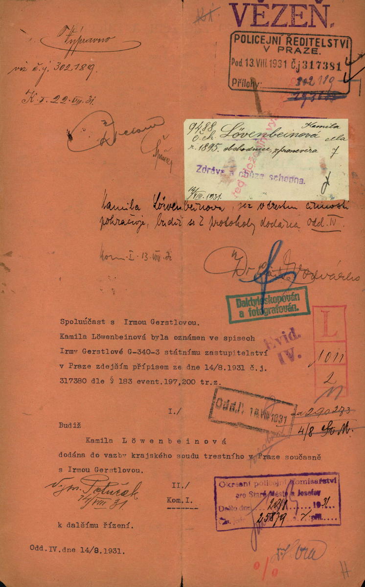National archives Prague > Police Directorate Prague > 1941-1950 > L > Löwenbeinová Kamila