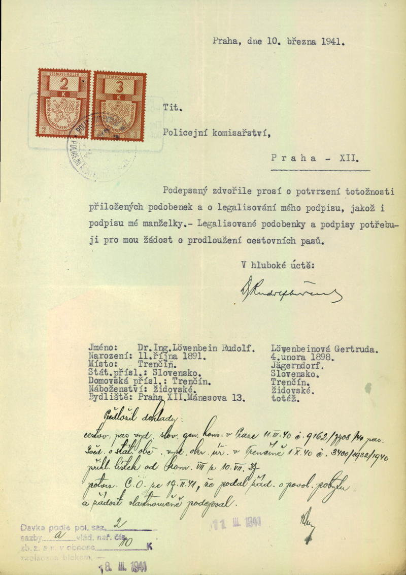 Löwenbein Rudolf: Žádost o potvrzení totožnosti