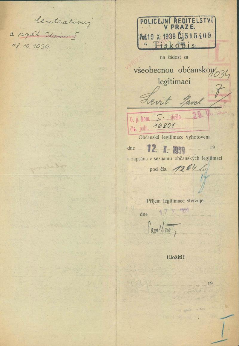 Lewit Pavel: Žádost o vydání občanské legitimace