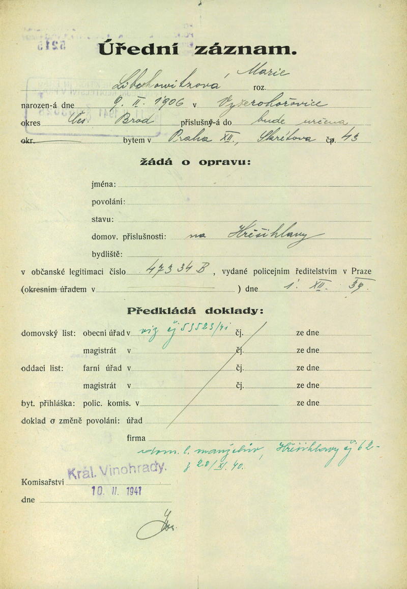 National archives Prague > Police Directorate Prague > 1941-1950 > L > Libochowitzová Marie