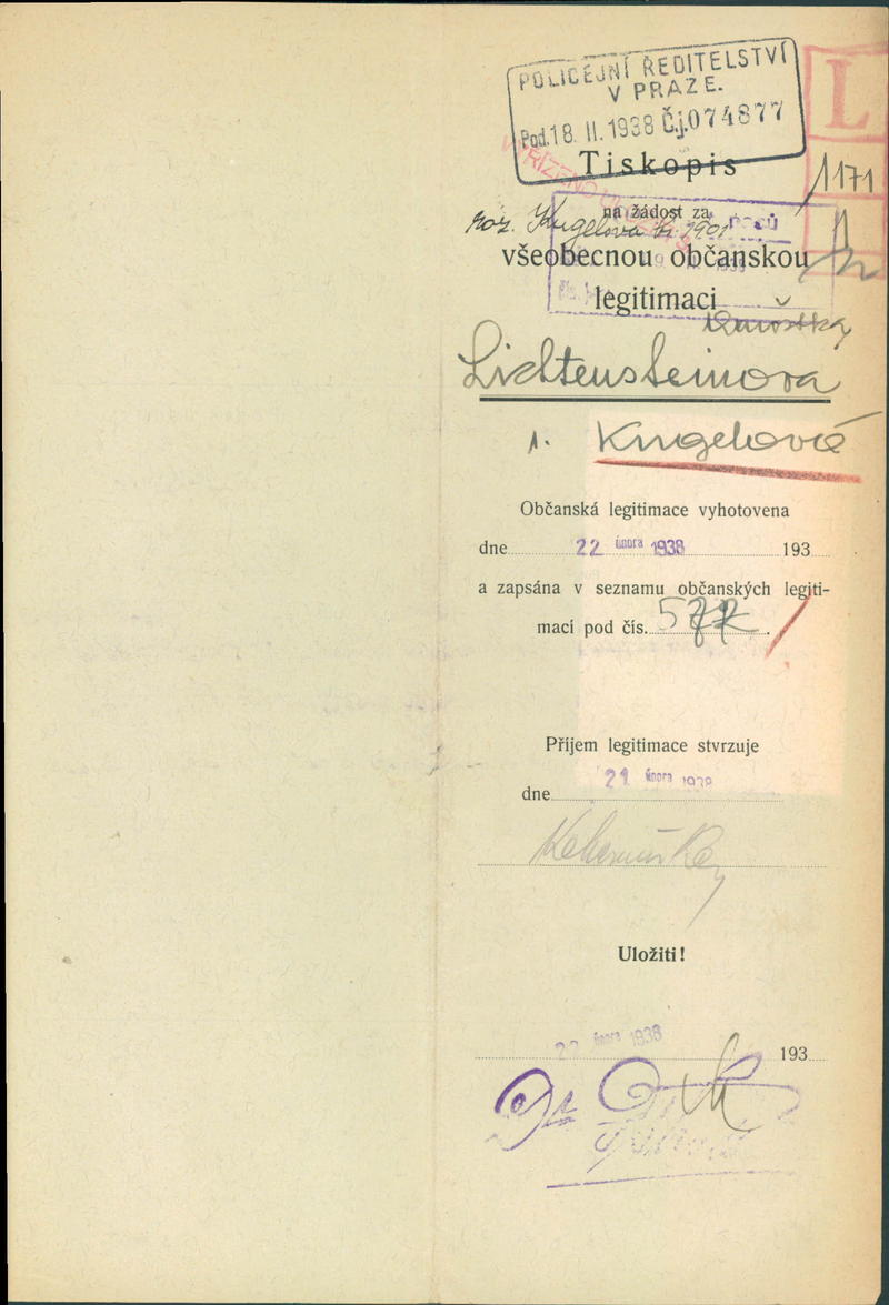 Lichtensteinová Ernestina: Žádost o vydání občanské legitimace
