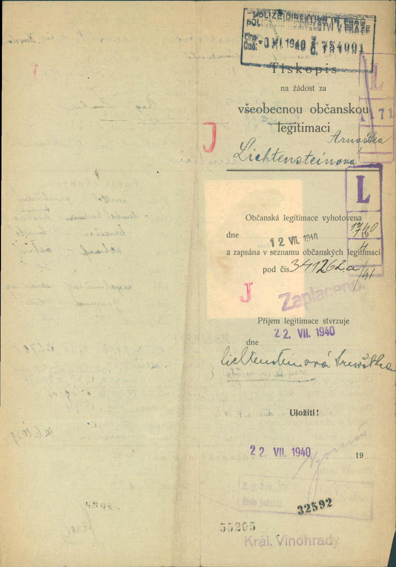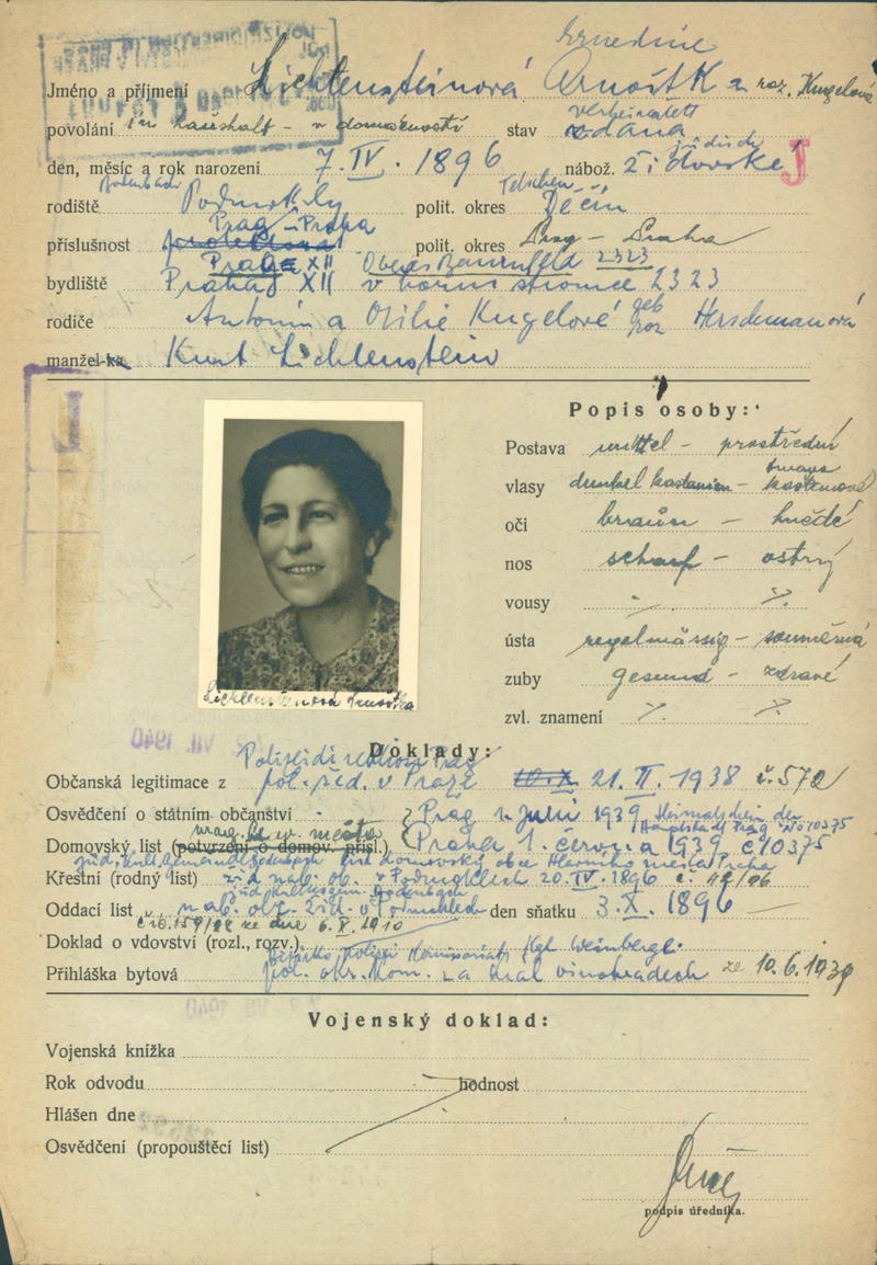 National archives Prague > Police Directorate Prague > 1941-1950 > L > Lichtensteinová Ernestina