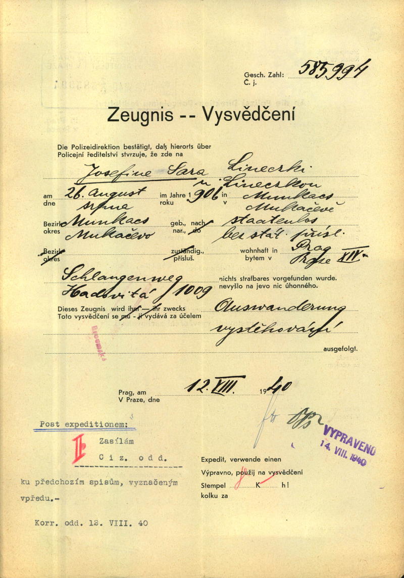 National archives Prague > Police Directorate Prague > 1941-1950 > L > Lineczká Josefa