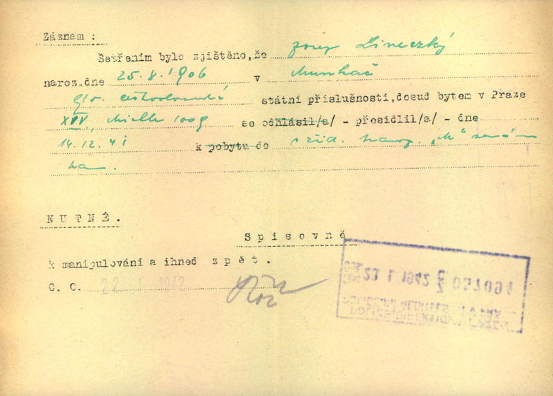 National archives Prague > Police Directorate Prague > 1941-1950 > L > Lineczká Josefa