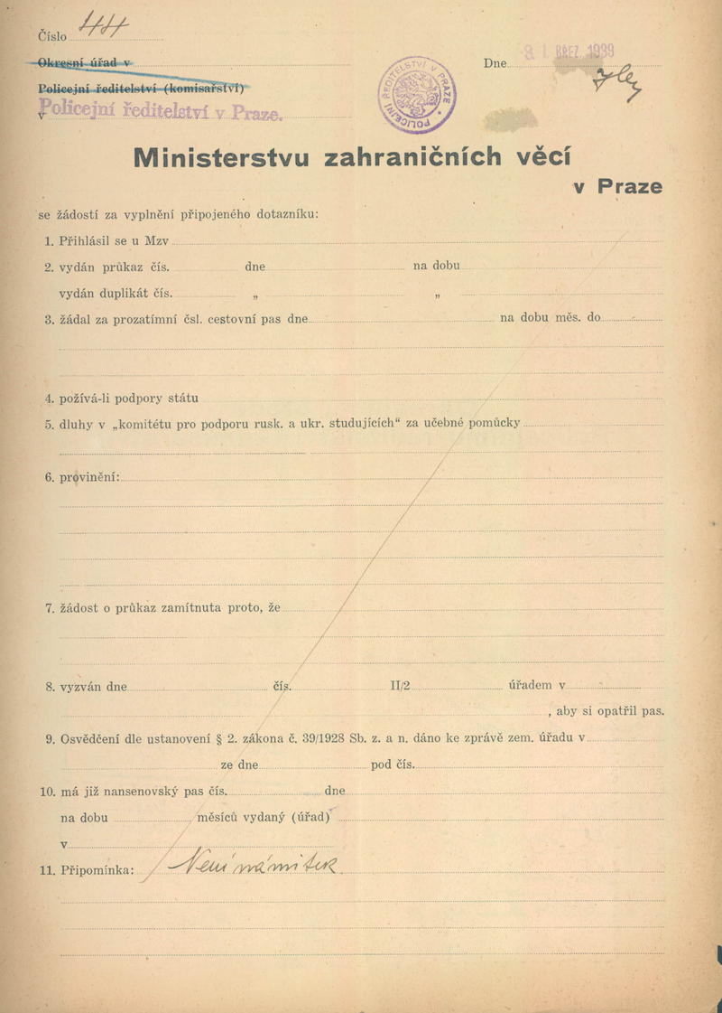 Lineczká Dora: Žádost o vydání občanské legitimace pro uprchlíky