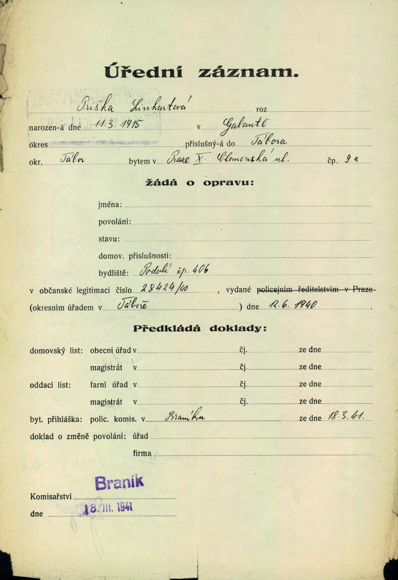 National archives Prague > Police Directorate Prague > 1941-1950 > L > Linhartová Piri