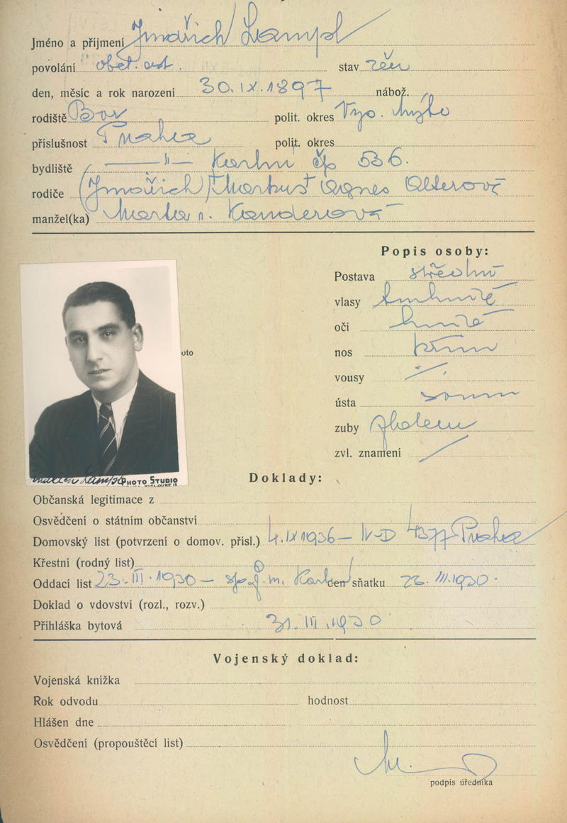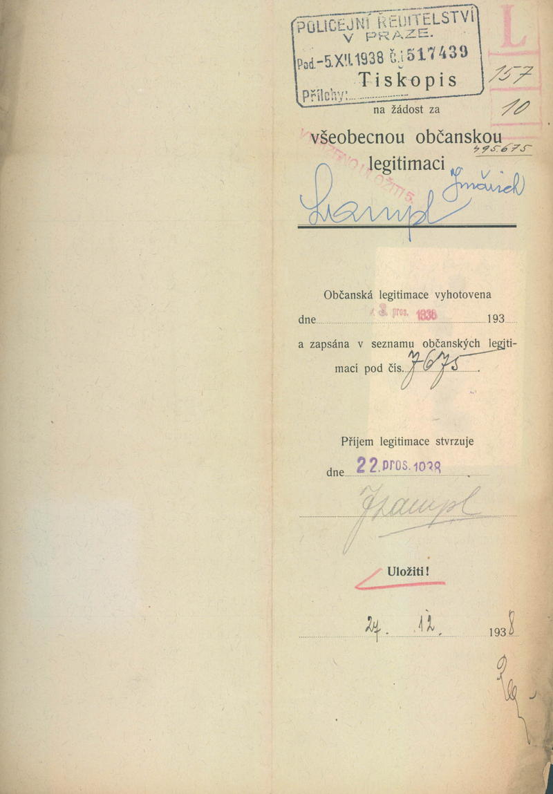 Lampl Jindřich: Žádost o vydání občanské legitimace