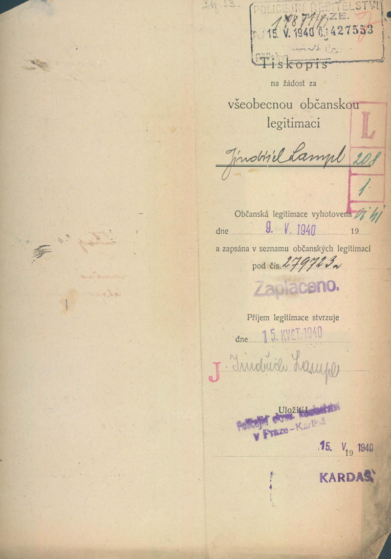 Lampl Jindřich: Žádost o vydání občanské legitimace