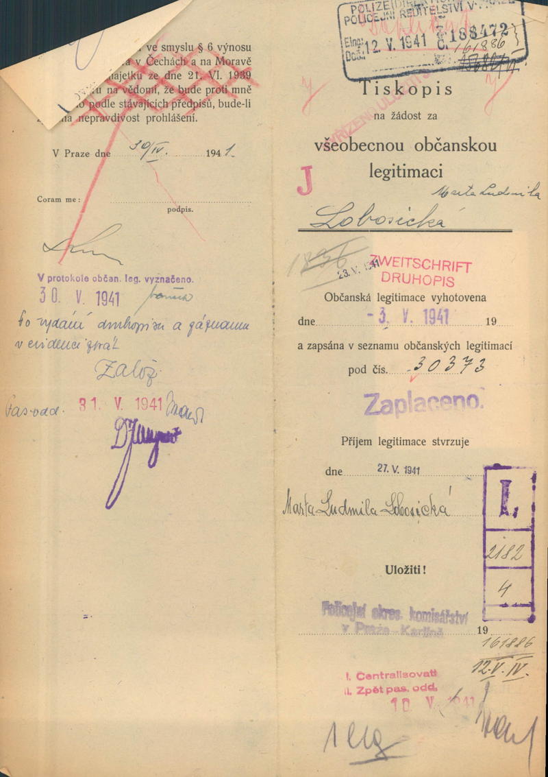 Lobosická Marta: Žádost o vydání občanské legitimace