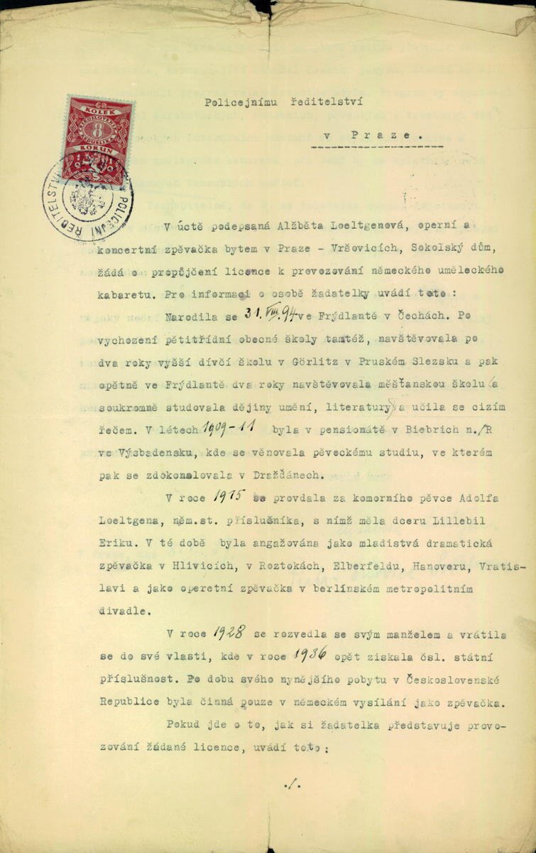 National archives Prague > Police Directorate Prague > 1941-1950 > L > Loeltgenová Eliška