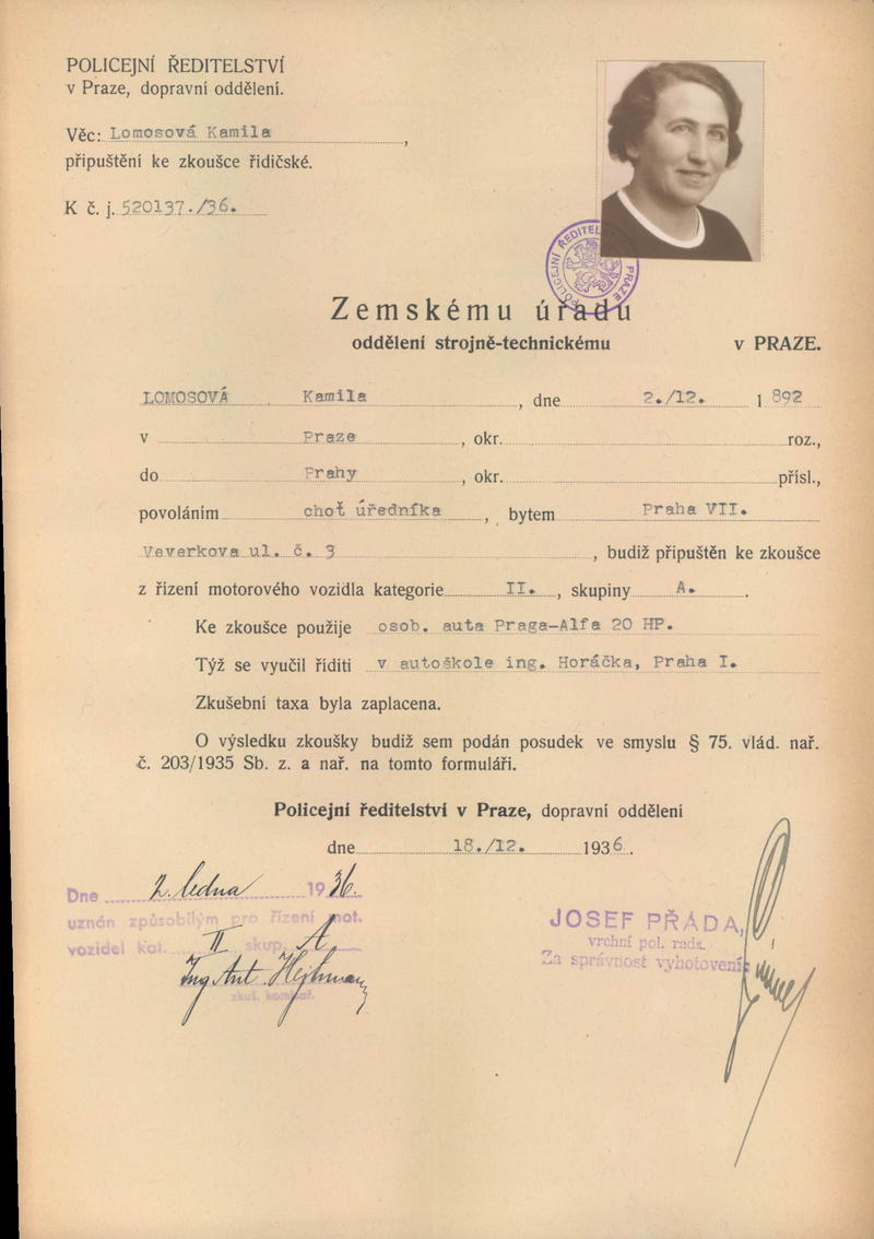 Lomosová Kamila: Připuštění k řidičské zkoušce
