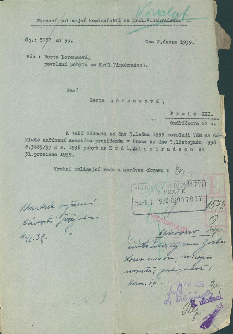 Lorencová Berta: Povolení pobytu