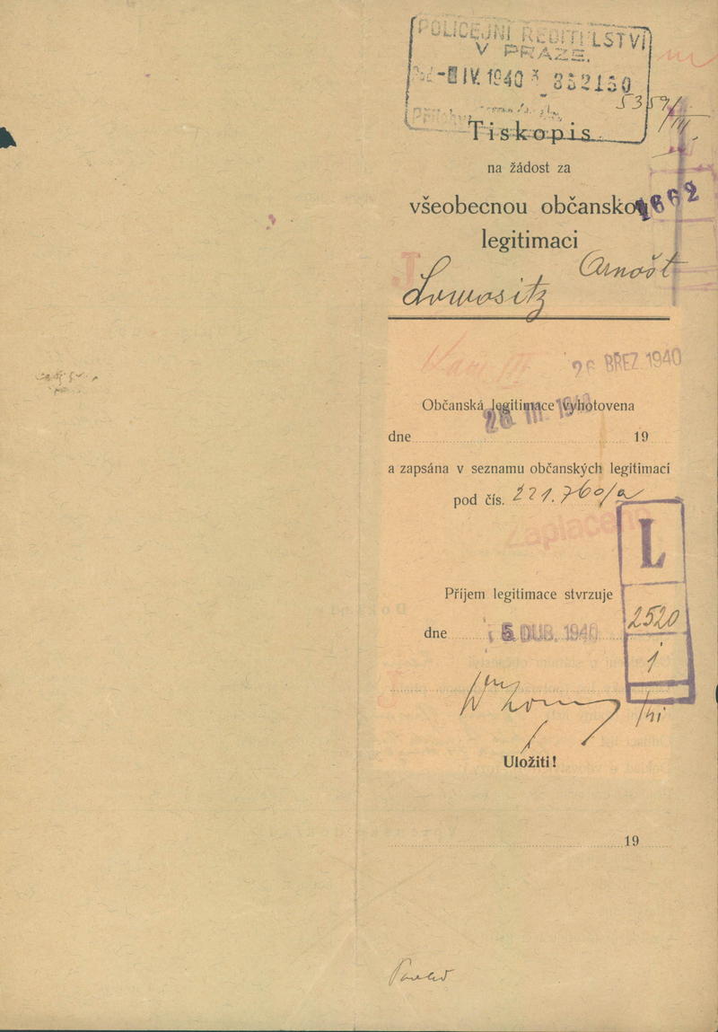 Lowositz Arnošt: Žádost o vydání občanské legitimace