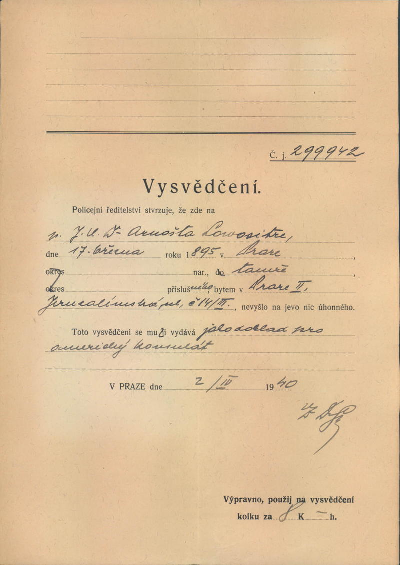 National archives Prague > Police Directorate Prague > 1941-1950 > L > Lowositz Arnošt