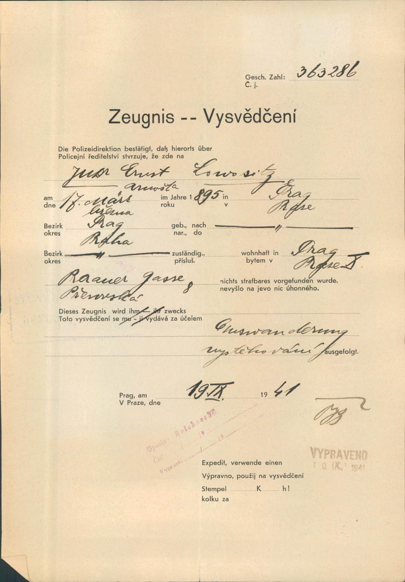 National archives Prague > Police Directorate Prague > 1941-1950 > L > Lowositz Arnošt