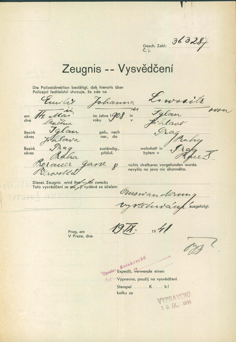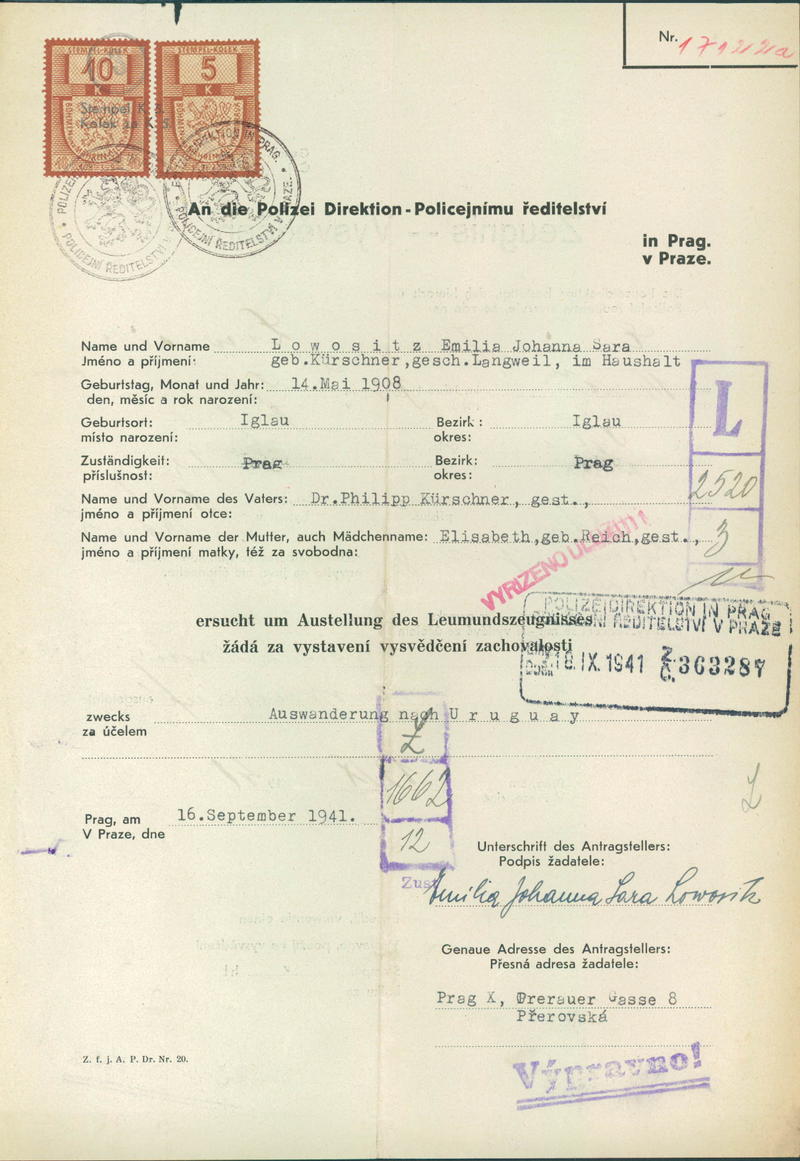 National archives Prague > Police Directorate Prague > 1941-1950 > L > Lowositzová Emilie