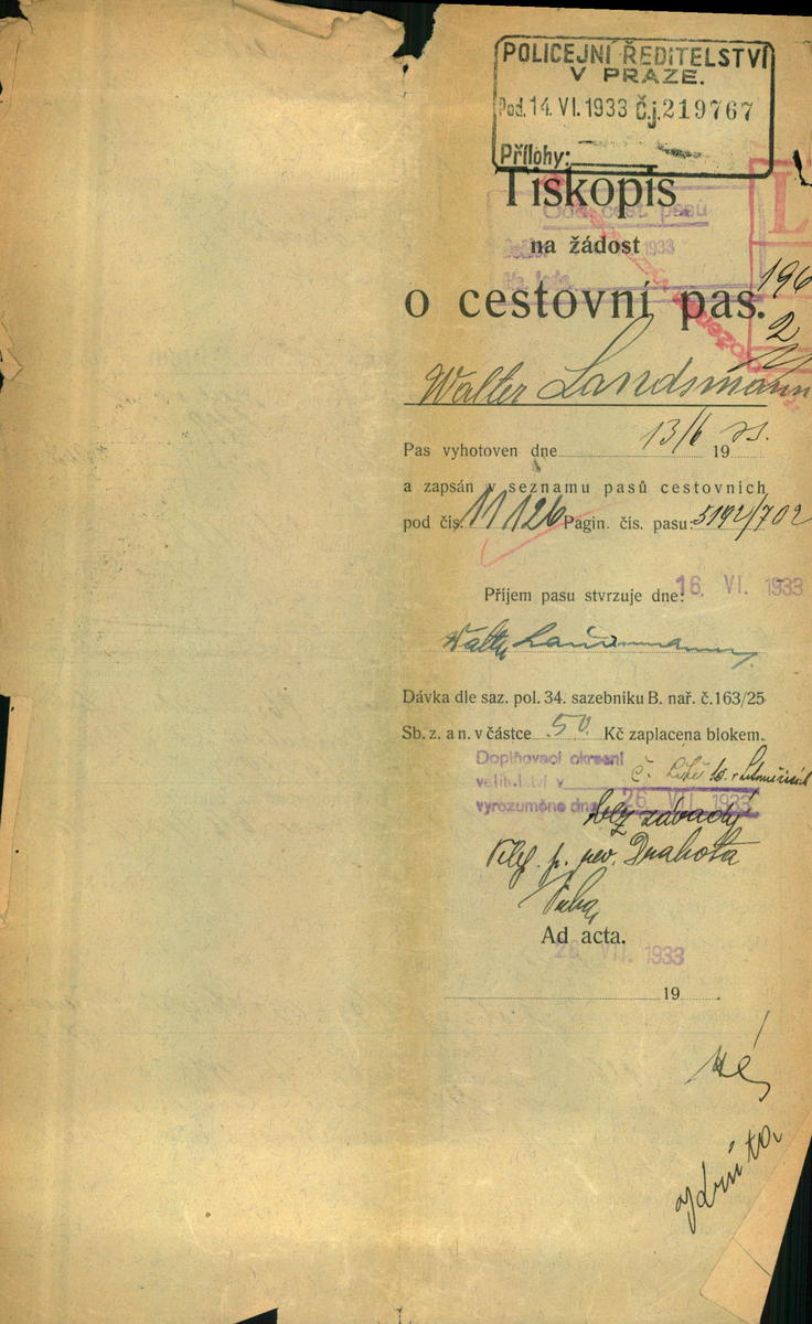 Landsmann Valtr: Žádost o vydání cestovního pasu