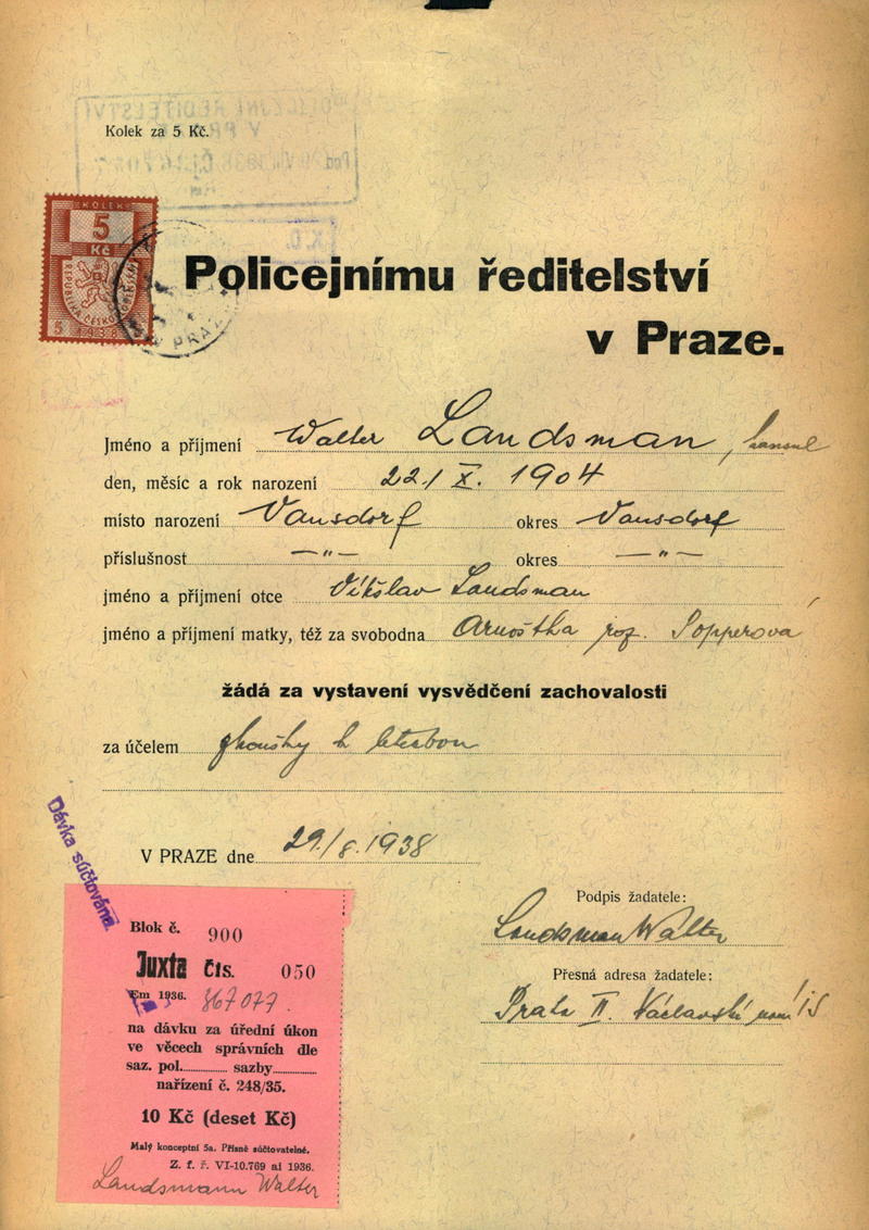 National archives Prague > Police Directorate Prague > 1941-1950 > L > Landsmann Valtr