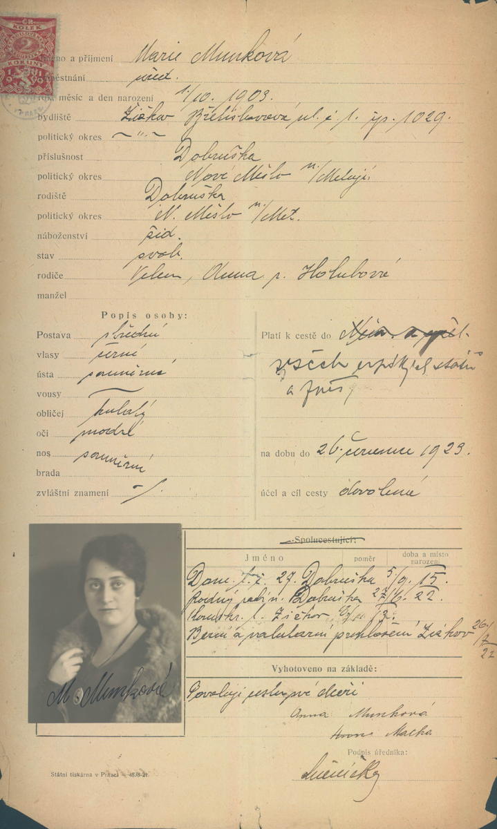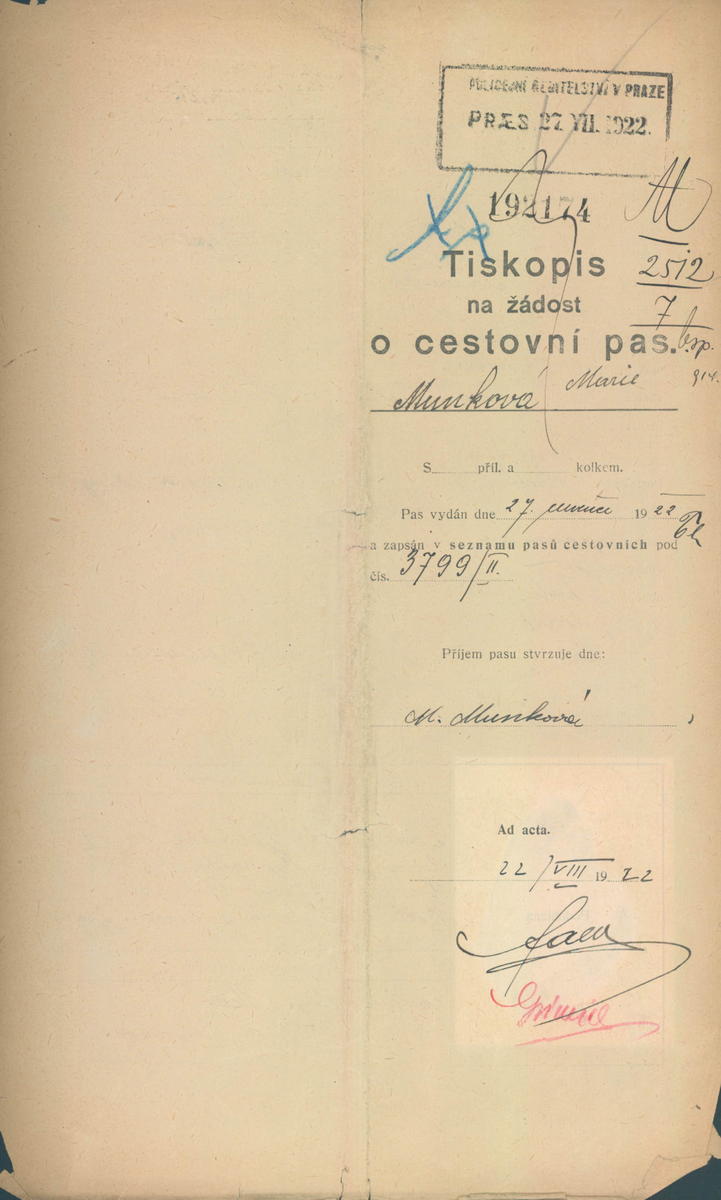 Landsmannová Marie: Žádost o vydání cestovního pasu
