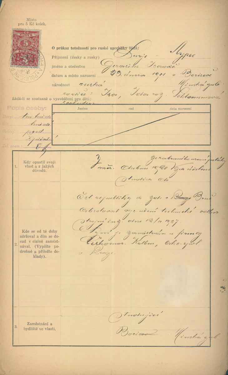 Lurje Gerasin: Žádost o vydání průkazu totožnosti pro ruské uprchlíky