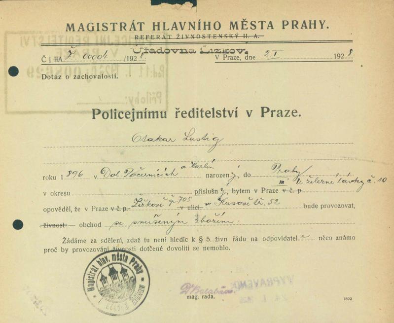 National archives Prague > Police Directorate Prague > 1941-1950 > L > Lustig Otakar
