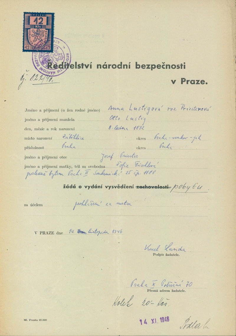 Lustigová Anna: Žádost potvrzení pobytu